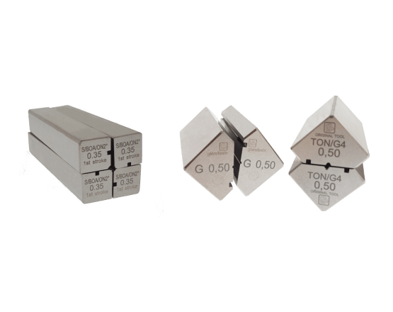 This blockholder, made in tempered steel, allows the beating of chain with round final shape, thanks to four of easily interchangeable inserts. The mould hammer the chain on four sides at the same time.